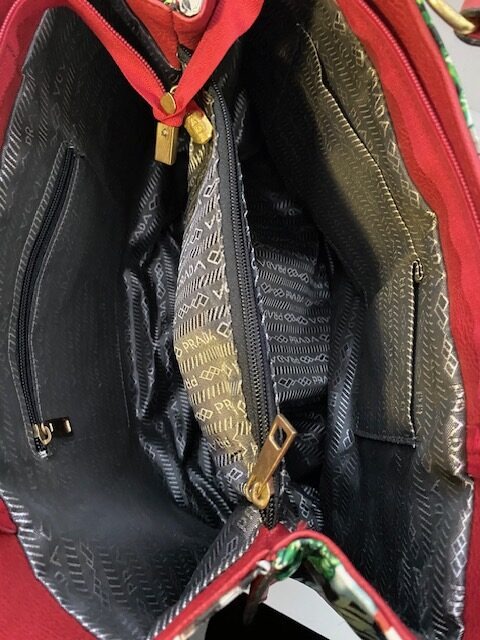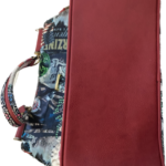 27 x 36 x 15,5 cm  – gevoerd met stof met logo  –  2 compartimenten  – middengedeelte met rits  –  1 zijkant met zak met rits  –  andere zijkant open vakjes