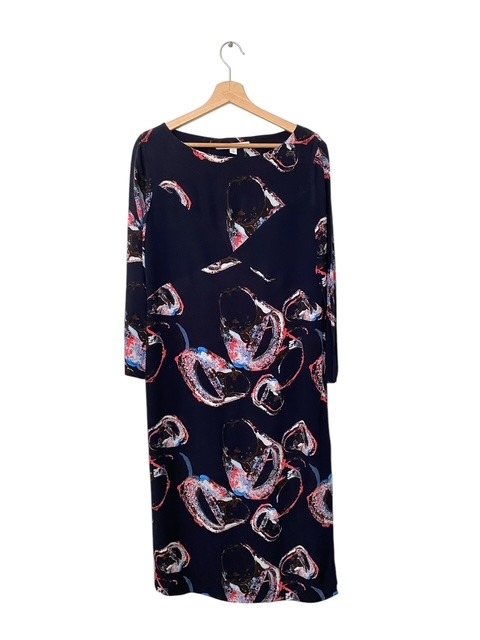 40/L/UK12   –  donkerblauw met print in koraal/wit/blauw