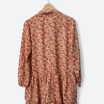 Dunne stof (polyester/viscose) – ruglengte = 82 cm – okselbreedte = 51 cm – strikkraag