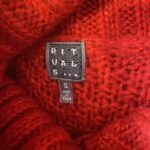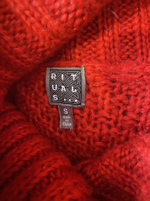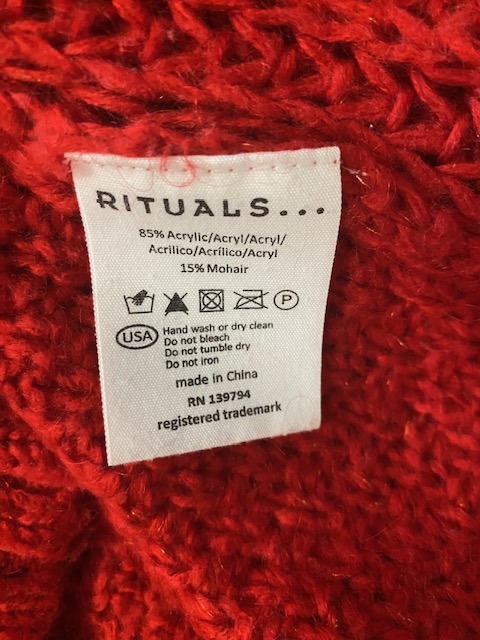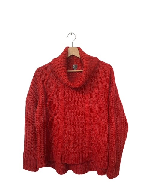 85% acryl & 15% mohair – langer afgerond achterpand – ruglengte = 65 cm – okselbreedte = 58 cm – ook passend maat M
