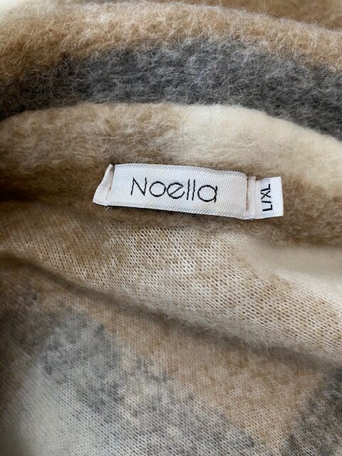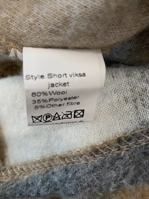 Knoopsluiting – ruglengte = 59 cm – okselbreedte = 55 cm – combinatiemaat L/X, maar valt meer als een L – 60%wol, 35% polyester & 5% overigen.