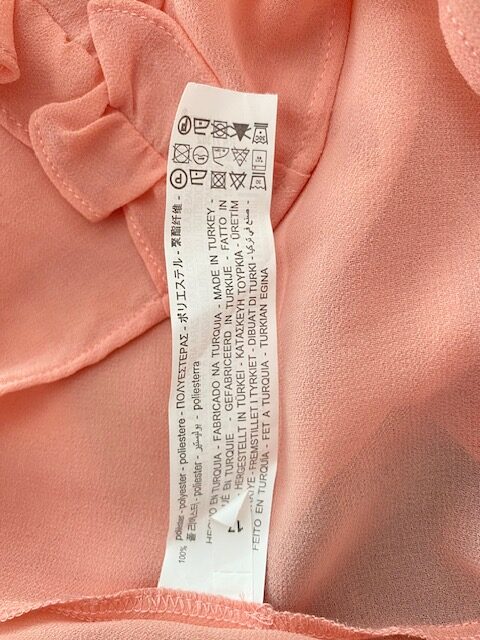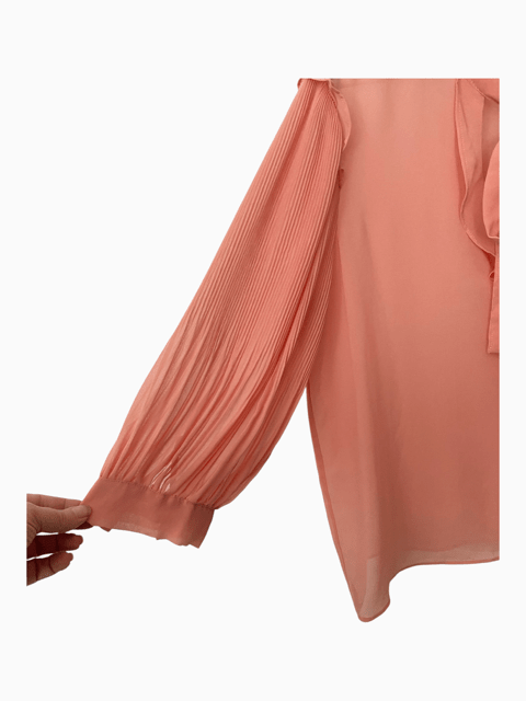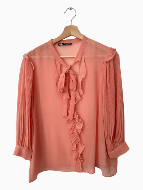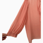 semi-transparante stof 100% polyester – 3/4 mouwen plisse-stof – manchet met knoopje – ruglengte = 60 cm – okselbreedte = 58 cm – wijdvallend