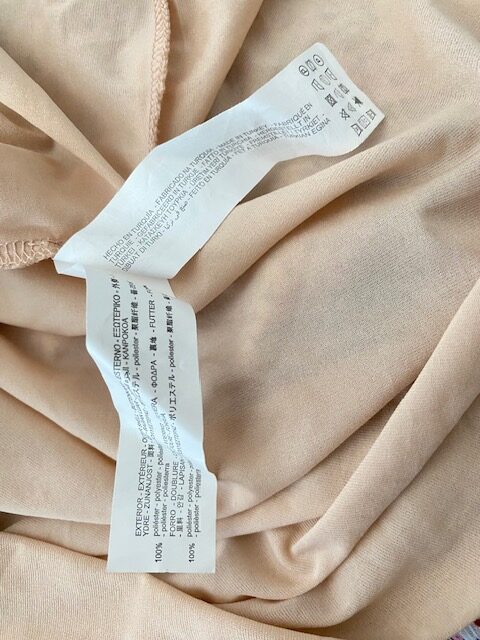 Bovenlaag transparante stof (100% polyester) – korte beide stretch binnenrok – strikkoordjes op rug – ruglengte = 126 cm – elastiek in taille en mouwuiteinden – okselbreedte = 52 cm